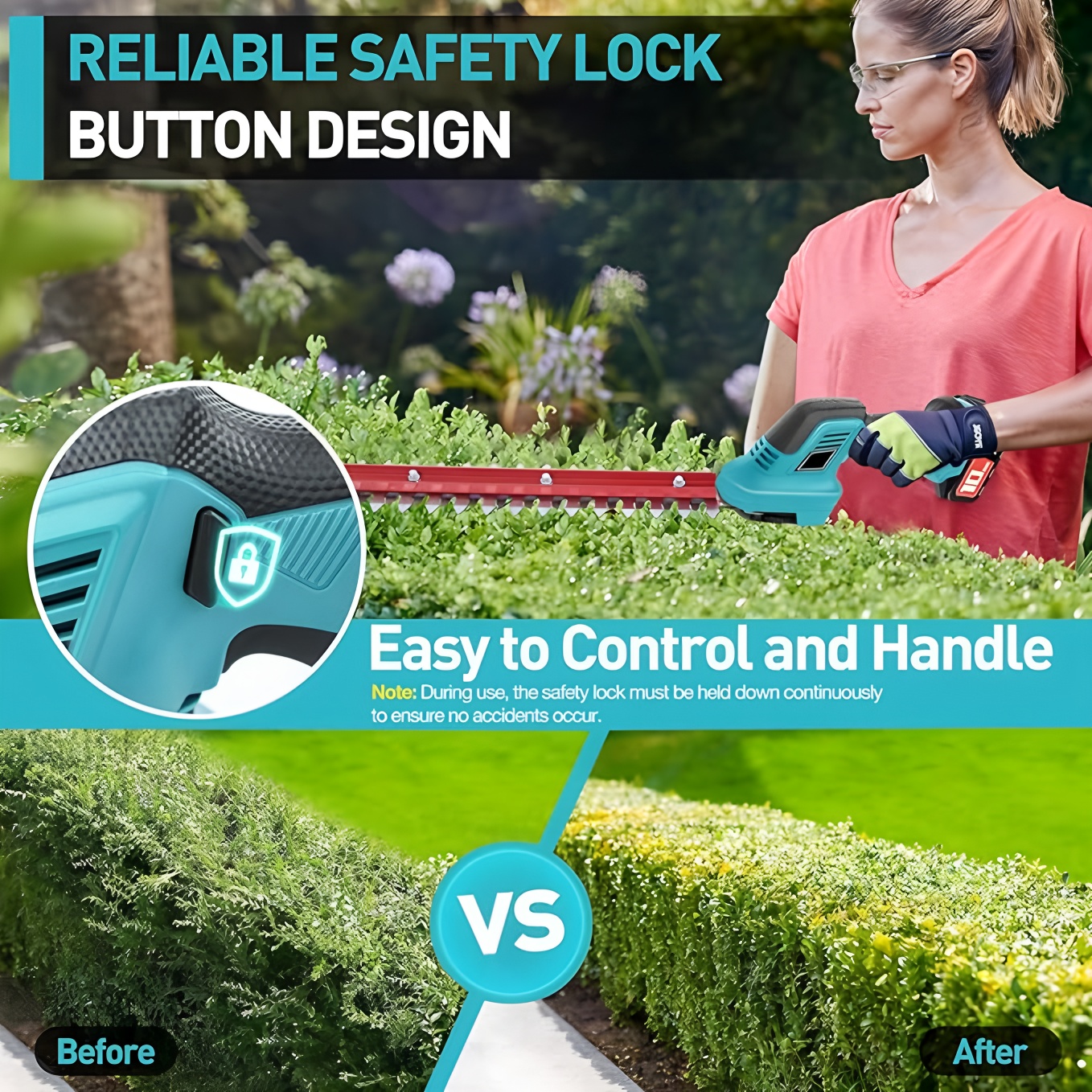 Double‑Safety Cordless Shrub Trimmer